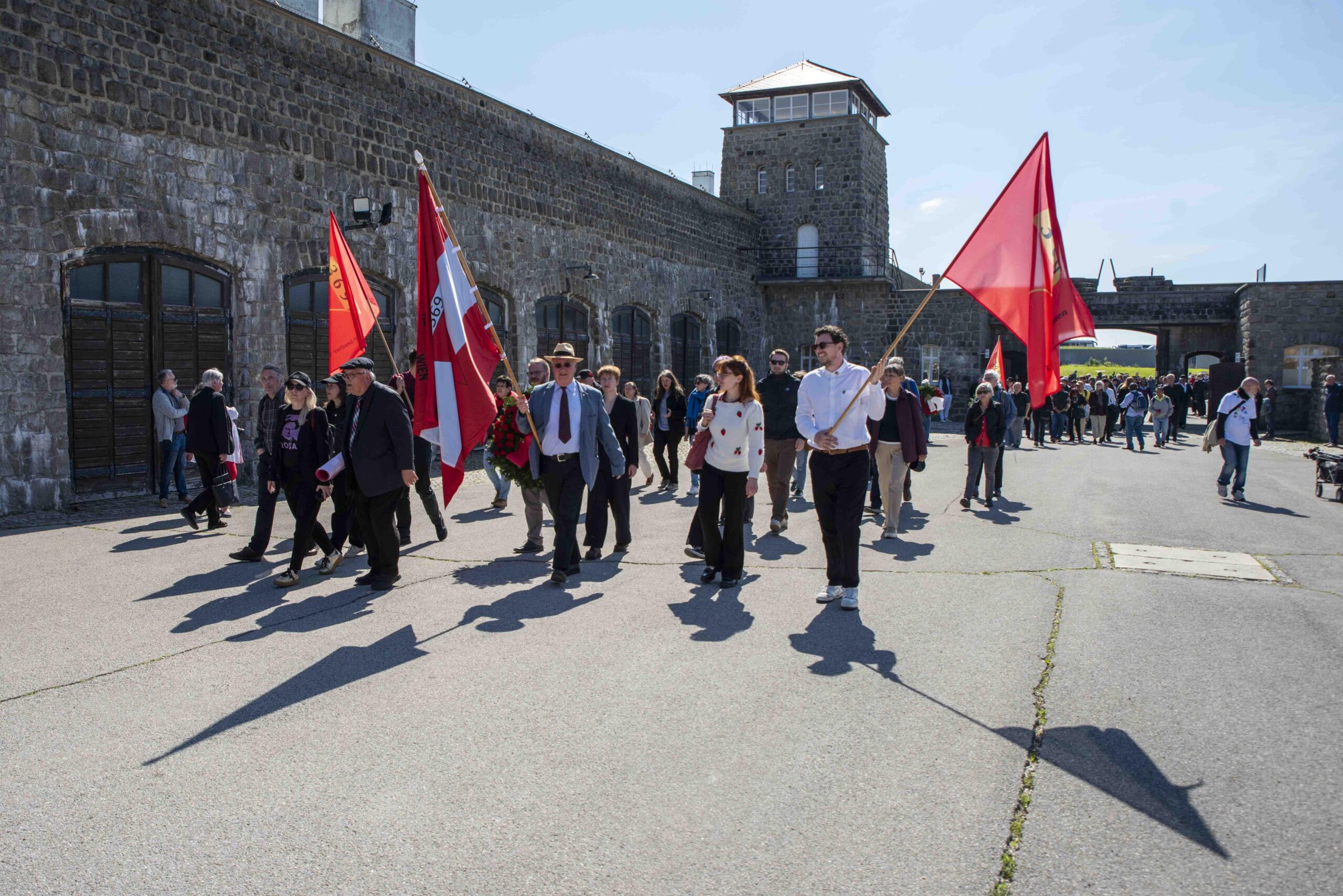 Unser Bus war binnen kürzester Zeit ausgebucht, und insbesondere viele junge Genossinnen und Kameradinnen schlossen sich uns dieses Mal an. Bereits während der Anreise boten unsere Genossen Narodoslavsky und Garscha Einführungsvorträge zur Geschichte des Konzentrationslagers Mauthausen sowie zur Befreiung durch die Alliierten.