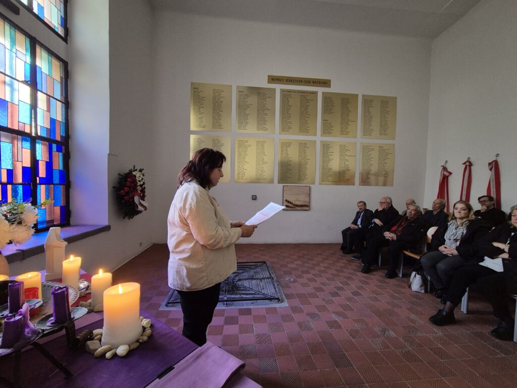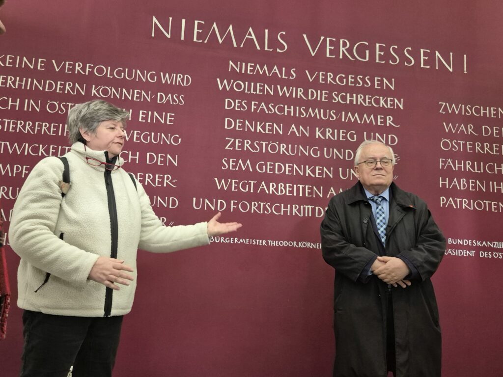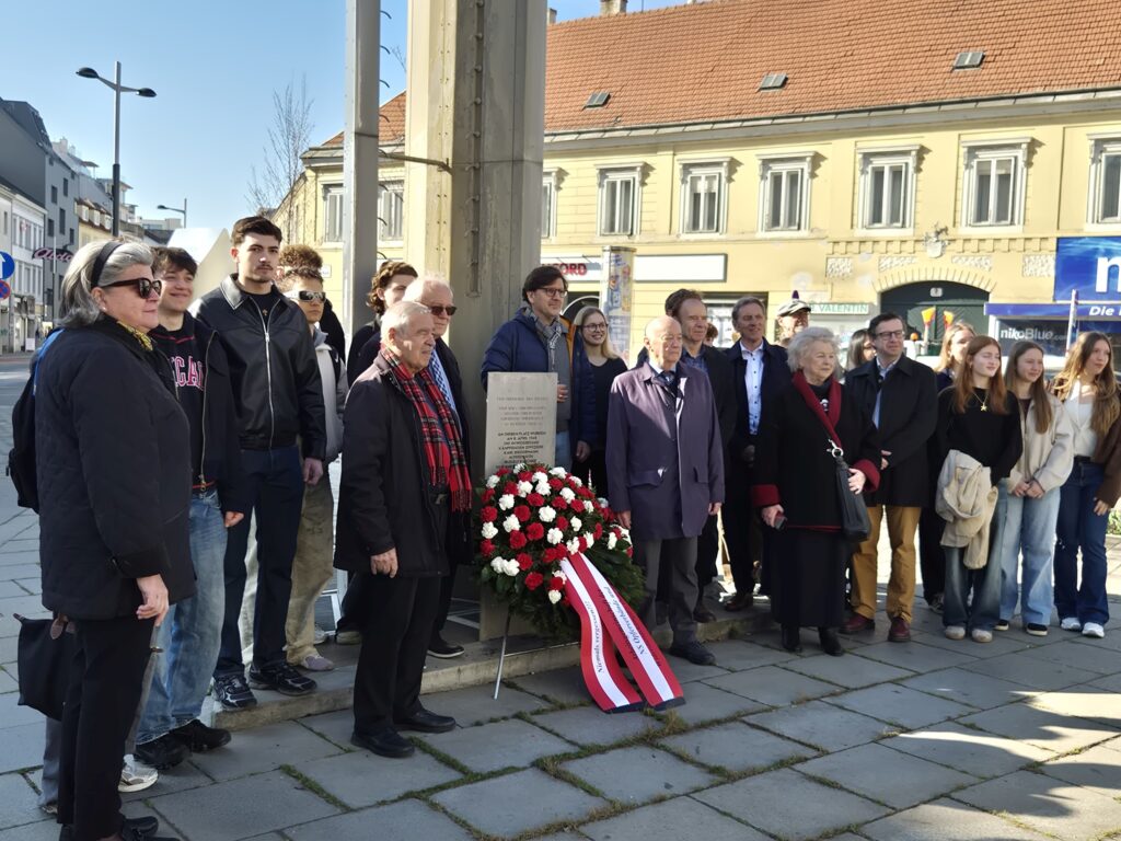 Friedl Garscha sprach über die Rolle des DÖW bei der vor 15 Jahren erfolgten Neugestaltung der ursprünglich 1968 errichteten Gedenkstätte. Schüler:innen des Wirtschaftskundlichen Realgymnasiums Feldgasse lasen aus dem Buch Lass das gehen – Eine jüdische Familiengeschichte im Spiegel des 19. und 20. Jahrhunderts von Pascal Merl, dem Enkelsohn von Harry Merl. Ihren Vortrag widmeten sie Harry Merl. Auch Lehrlinge der Tourismus-Berufsschule Hütteldorfer Straße nahmen an der Veranstaltung teil.