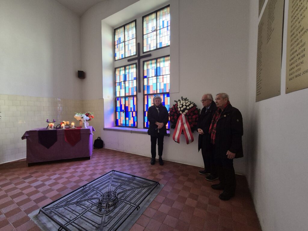 Um 10:30 Uhr kamen 20 Personen aus den Opferverbänden im Hinrichtungsraum des Landesgerichts für Strafsachen zusammen. LG-Präsident Fritz Forsthuber begrüßte die Anwesenden. Für die ÖVP-Kameradschaft der politisch Verfolgten sprach Gaby Wagner. Ursula Schwarz vom DÖW las aus den Abschiedsbriefen Hingerichteter an ihre Angehörigen – ein eindringliches Zeugnis der Verbrechen, die in diesem Raum begangen wurden.
