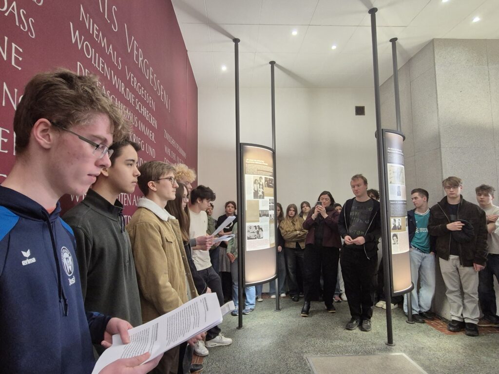 Beim anschließenden Gedenken vor dem Denkmal auf dem Morzinplatz hielt Mathias Lichtenwagner, Landessekretär des Wiener KZ-Verbands, eine Rede, die bei den anwesenden Schüler:innen sichtlich großen Anklang fand. Nach der Kranzniederlegung durch Vertreter:innen der Opferverbände ehrten Schüler:innen die Opfer der Gestapo mit Nelken.