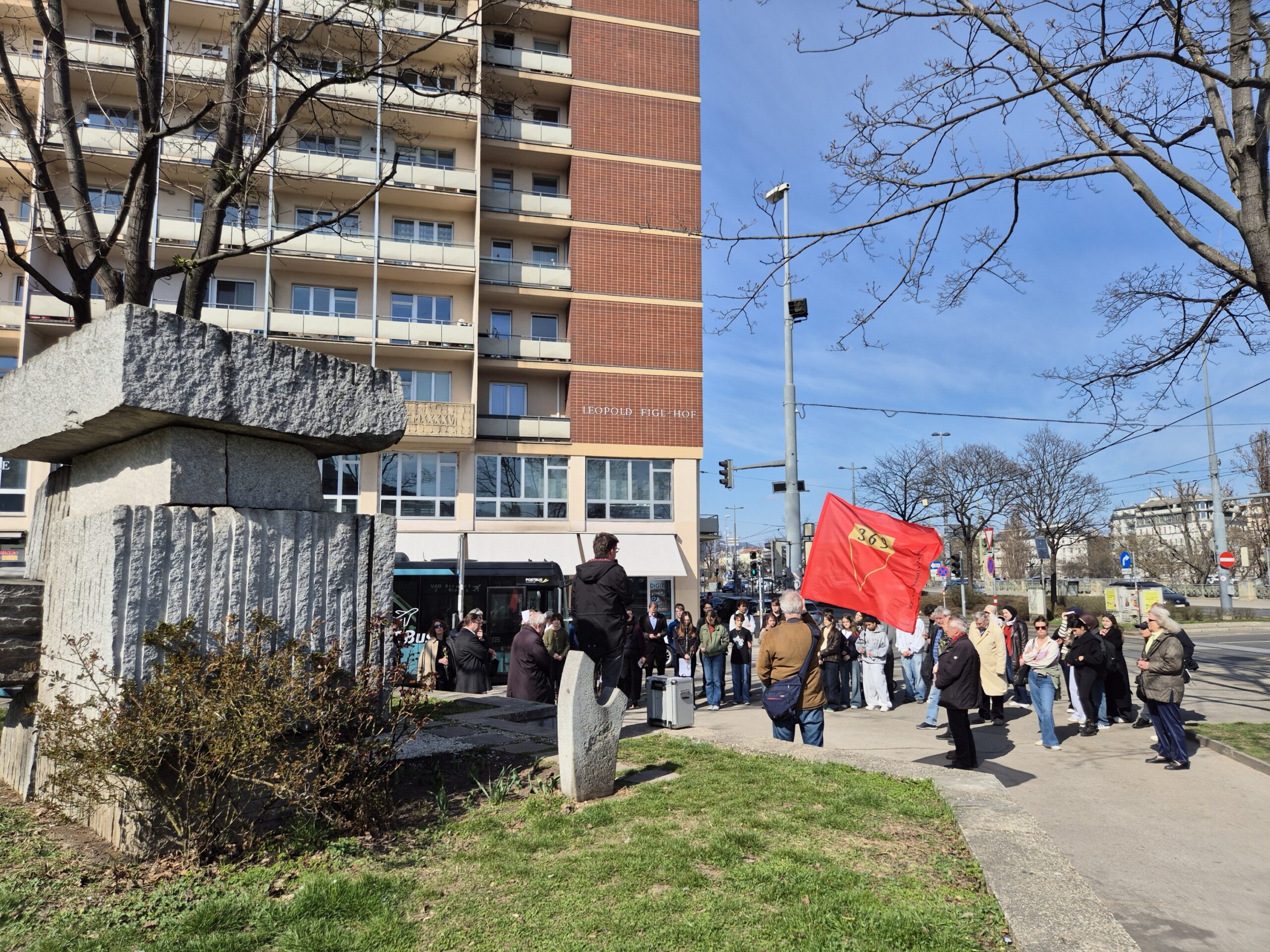 Friedl Garscha sprach über die Rolle des DÖW bei der vor 15 Jahren erfolgten Neugestaltung der ursprünglich 1968 errichteten Gedenkstätte. Schüler:innen des Wirtschaftskundlichen Realgymnasiums Feldgasse lasen aus dem Buch Lass das gehen – Eine jüdische Familiengeschichte im Spiegel des 19. und 20. Jahrhunderts von Pascal Merl, dem Enkelsohn von Harry Merl. Ihren Vortrag widmeten sie Harry Merl. Auch Lehrlinge der Tourismus-Berufsschule Hütteldorfer Straße nahmen an der Veranstaltung teil.