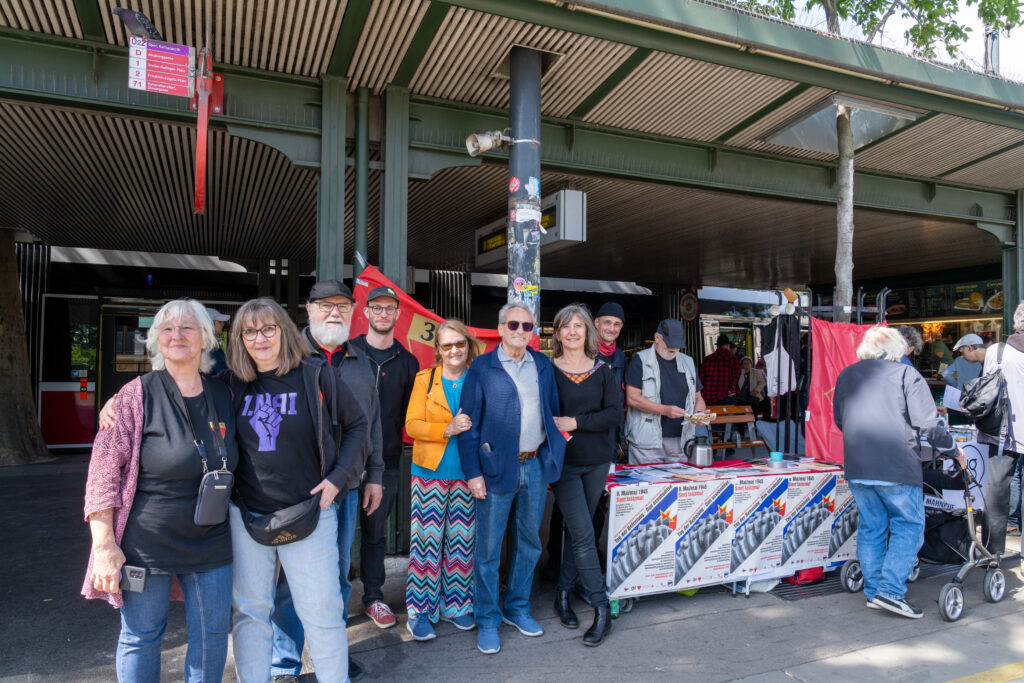 „Hoch der 1. Mai“ Infostand am Ring – Höhe Bellaria (Haltestelle Volkstheater)